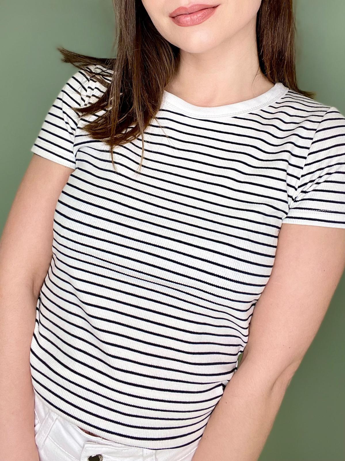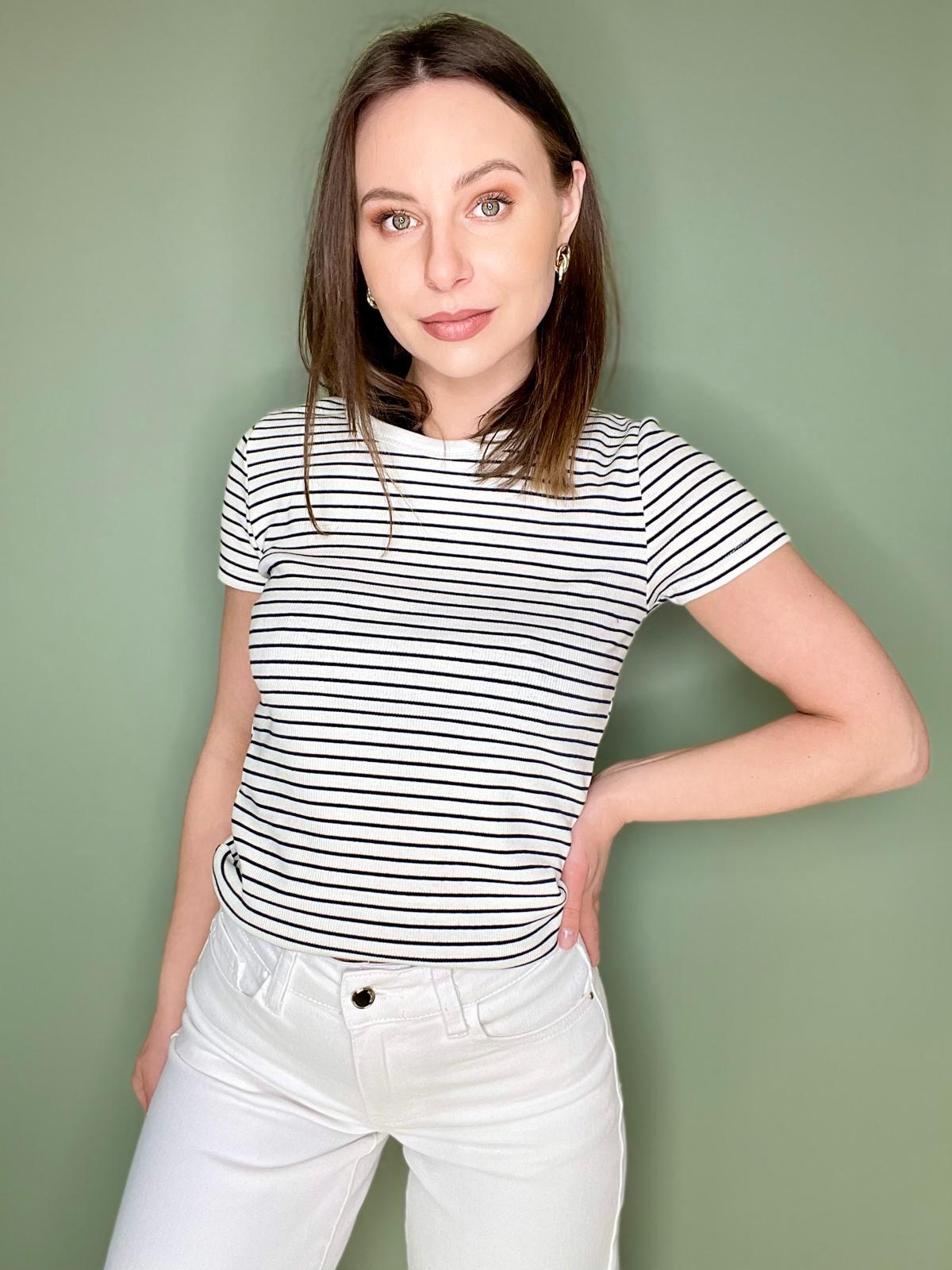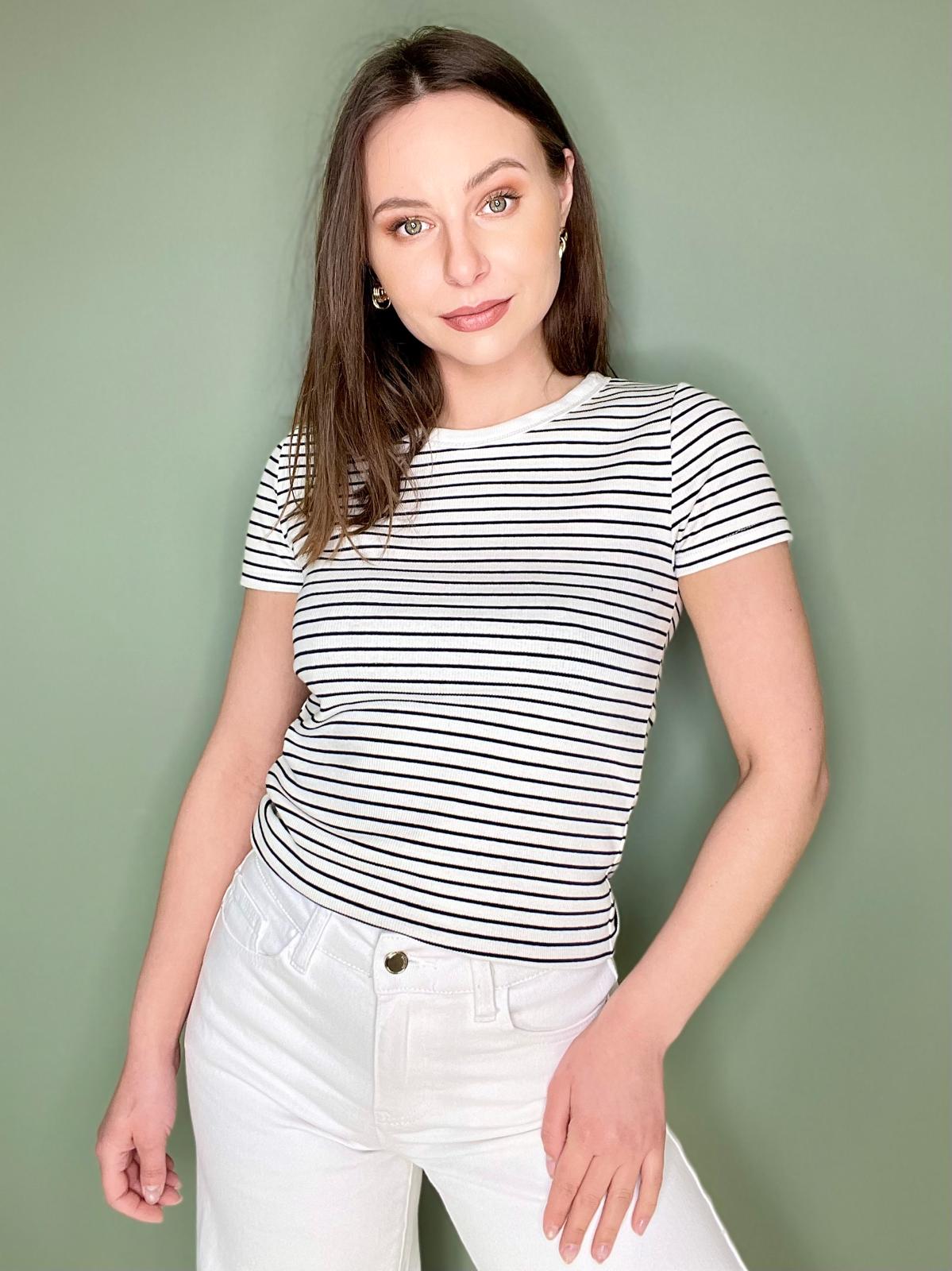 Koszulka o dopasowanym kroju. Uszyta z elastycznej prążkowanej bawełny.