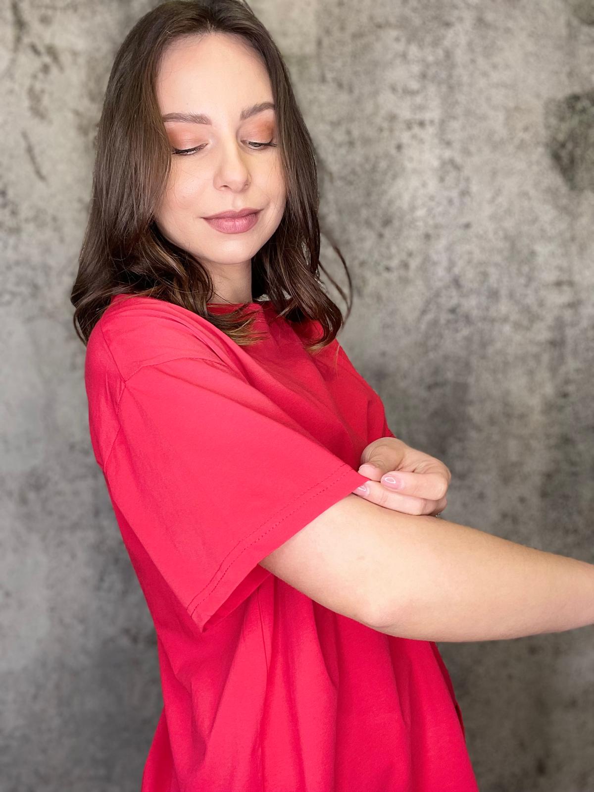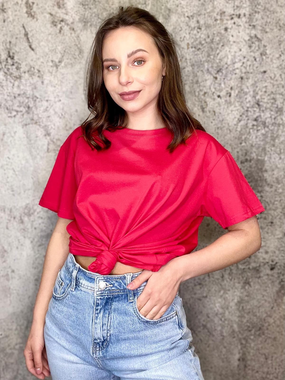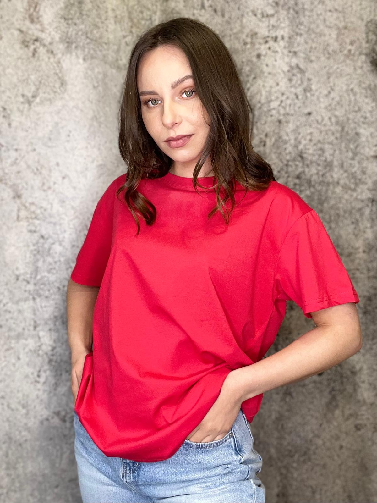 Czerwona koszulka z krótkim rękawem, klasyczny fason