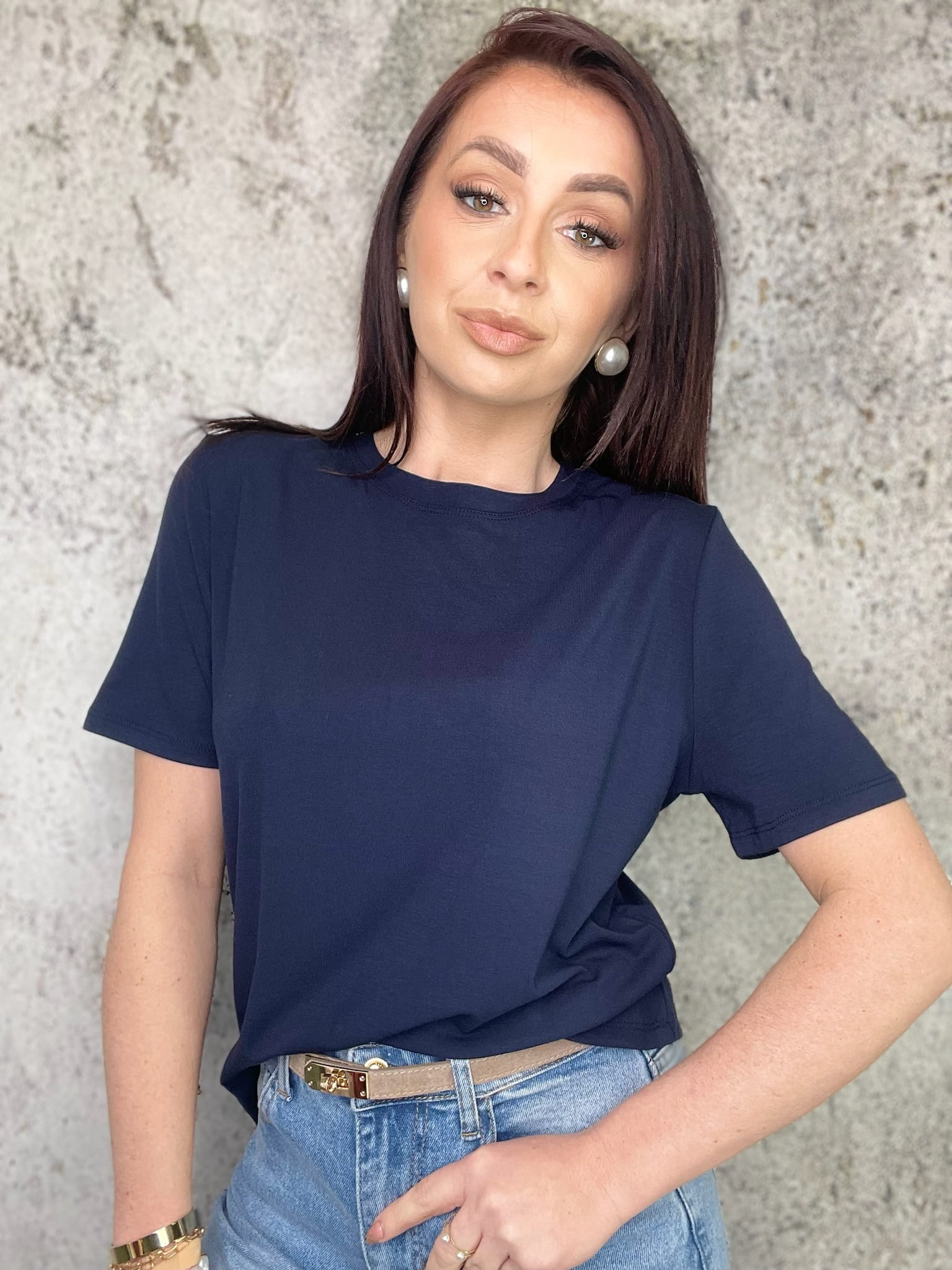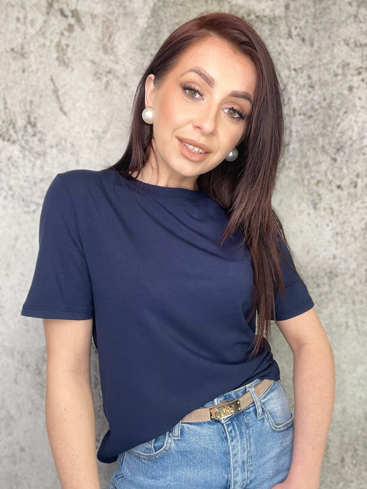 Granatowa koszulka z wiskozy basic