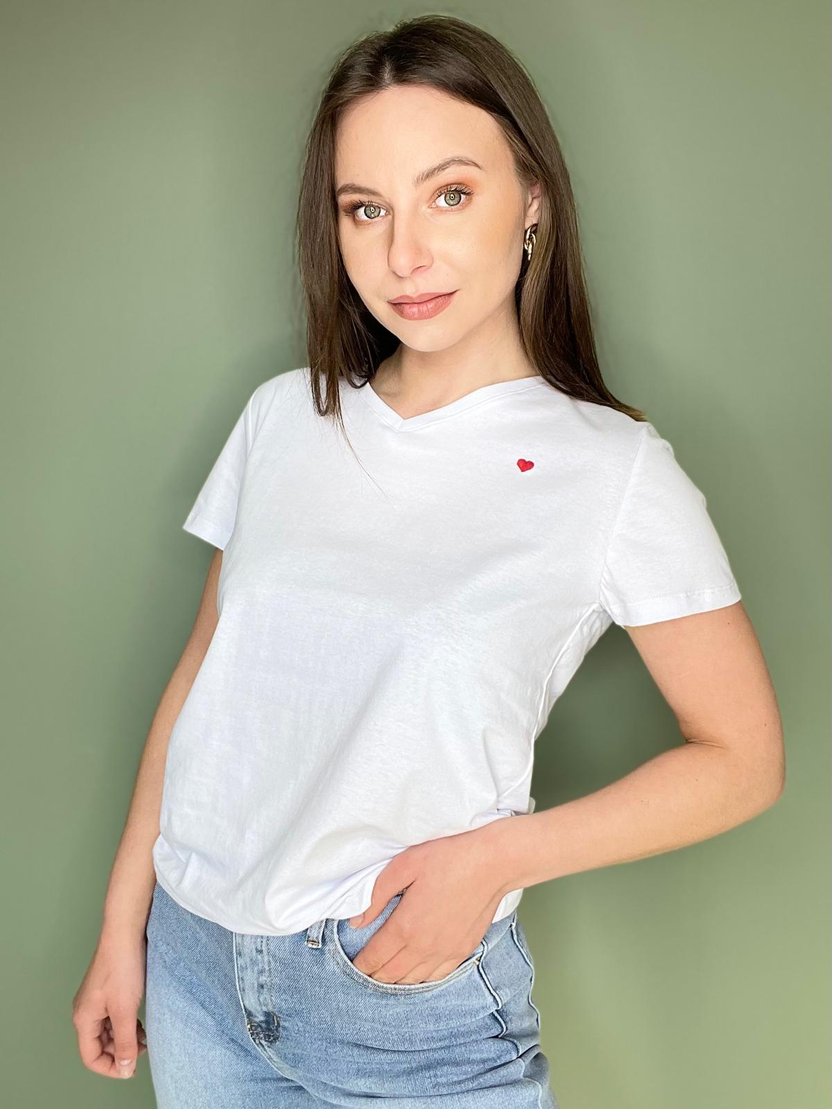 Koszulka basic biała, dekolt V, bawełna
