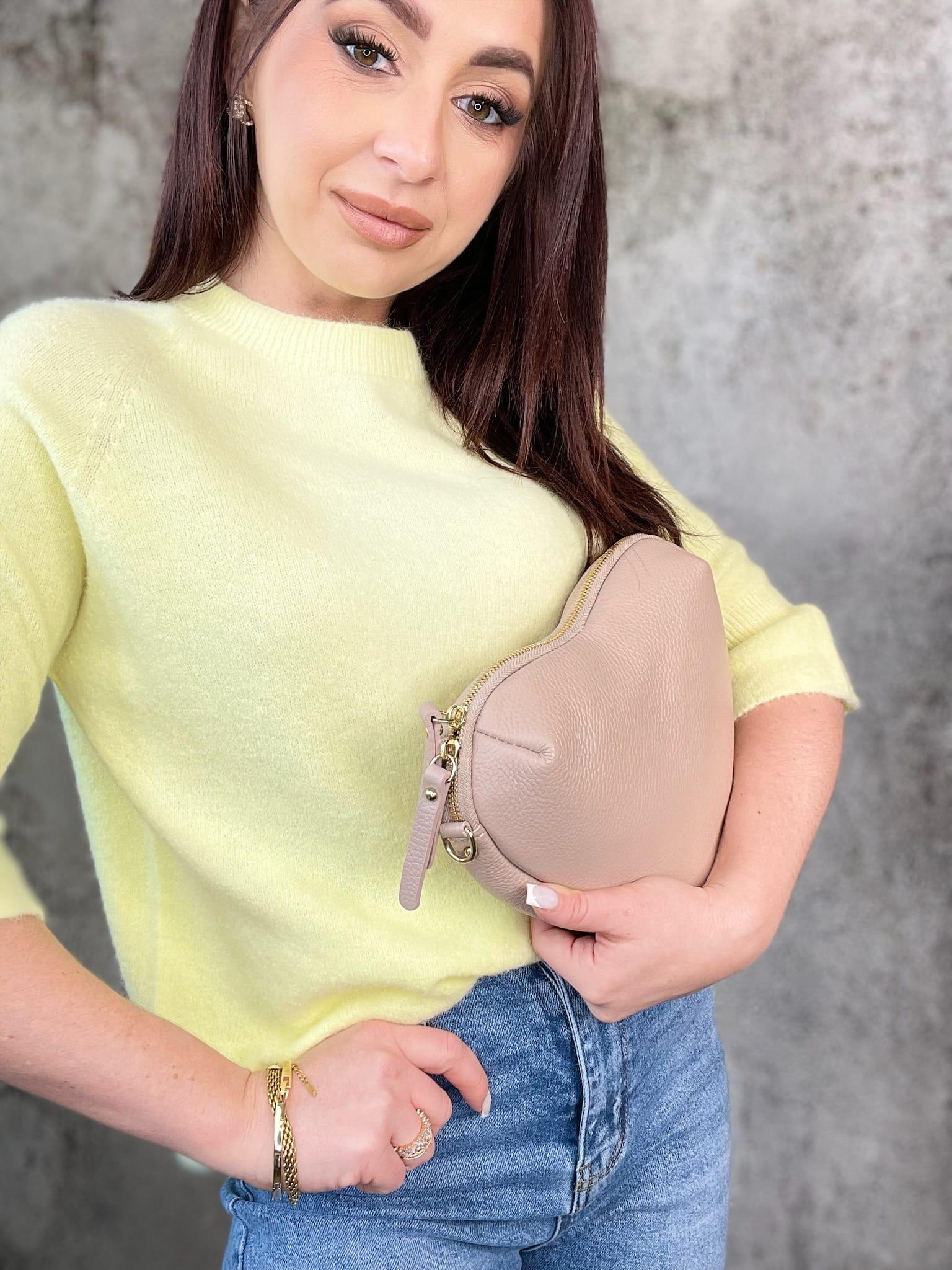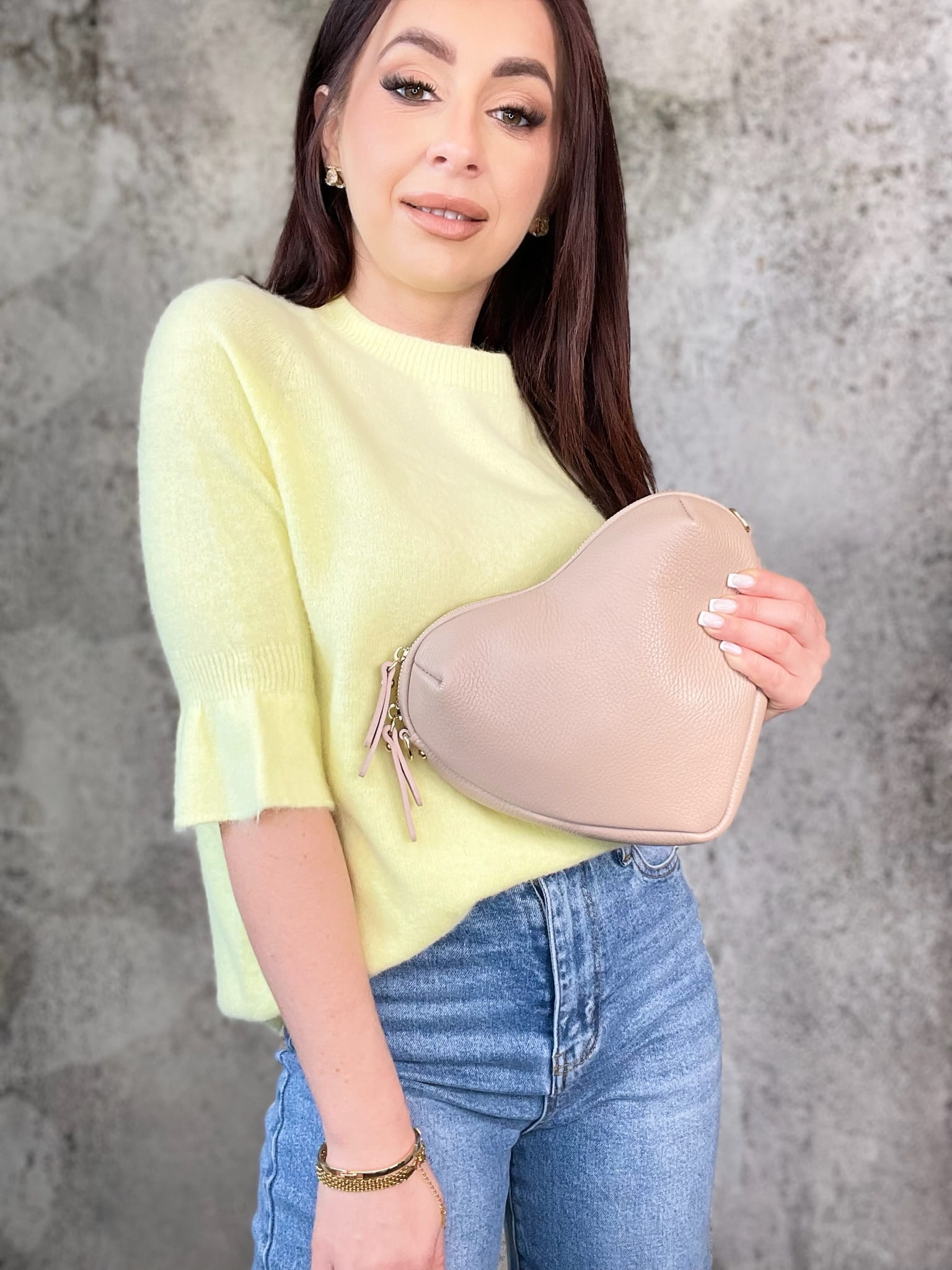 Elegancka torebka w kształcie serca wykonana z naturalnej skóry.